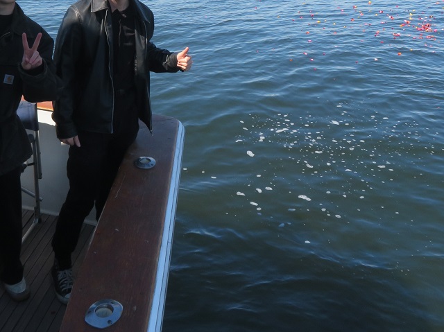 こちらの合同散骨のご家族様もお孫様がおじい様の散骨を行いました。